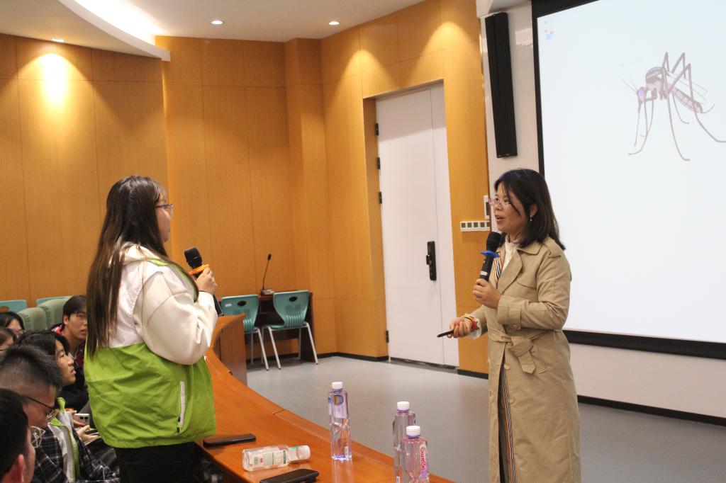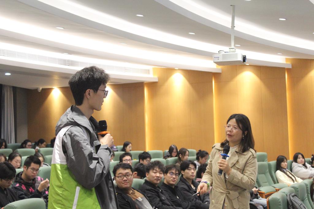 互动问答环节成为讲座的“升温点”。郭定芳教授围绕“安全防护要点”“感染后求助途径”等核心问题接连提问,学子们反应迅速、举手踊跃,既有对知识的精准回应,也有结合自身思考的真诚提问。工作人员为参与互动的同学送上定制纪念品,进一步点燃了全场参与热情。“原来很多日常接触根本不会传染,这堂课让我既学会了保护自己,也知道该如何尊重他人。”现场一名学生在互动后深有感触地说。