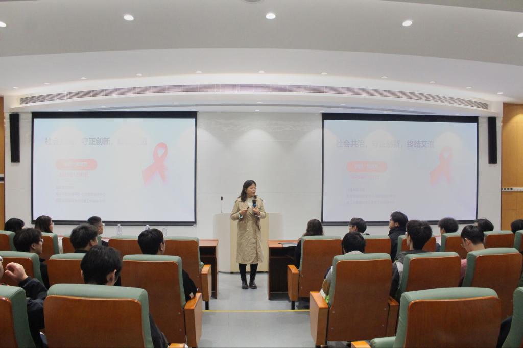 在第36个“世界艾滋病日”来临之际,为筑牢青年学生健康防线,引导大学生科学认识艾滋病、主动防范健康风险,12月1日,湖北商贸学院经济与管理学院特邀青少年性教育领域资深专家郭定芳教授,在鸿博楼J1报告厅开展“青春我懂艾,知艾我智行”主题科普讲座。学院分团委书记戴小雨主持活动,现场湖商学子齐聚,共同聆听这场兼具专业性与温度的健康必修课。