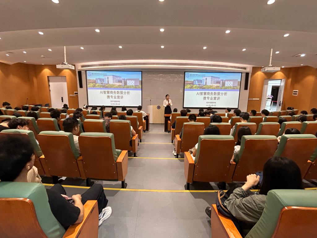 2025 年 10 月 10 日,经济与管理学院在 J1 场地顺利组织“AI 智慧商务数据分析”微专业宣讲,电子商务、金融学等专业 2026 届毕业生参会,微专业负责人孟静副教授全程主讲,现场气氛热烈,反响良好。