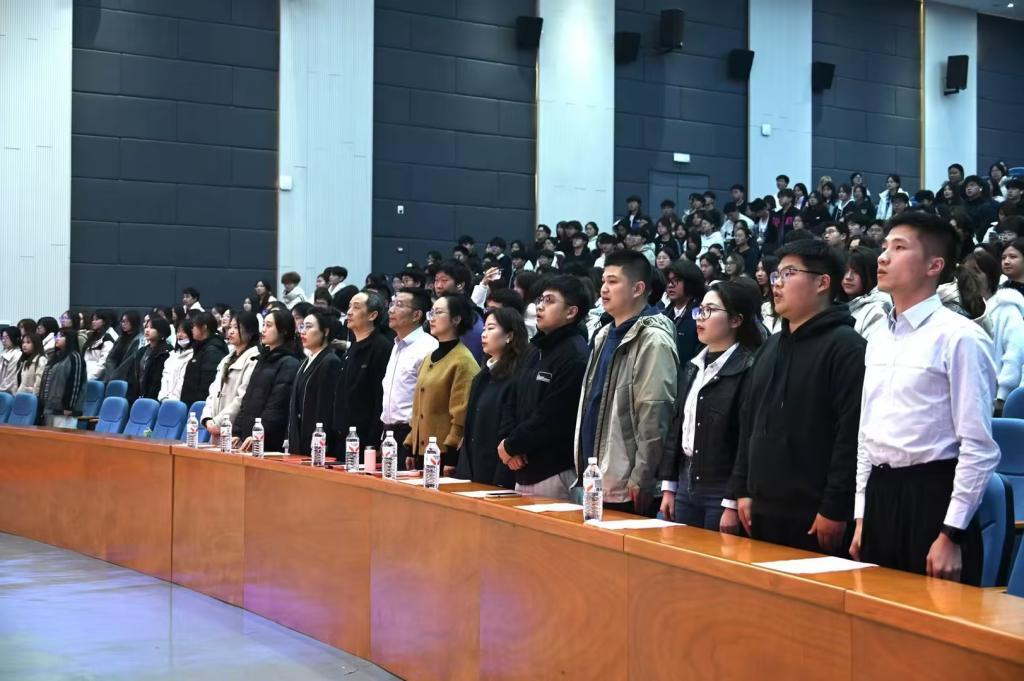 学生代表李如愿上台分享成长故事,她以自身在学习与实践中的经历,讲述了在学院优良学风熏陶下的蜕变与收获,也为同学们传递了“以学为乐,以行践知”的成长密码。优秀学风班级代表在各辅导员老师的带领下发起学风建设倡议,呼吁两校区同学携手营造勤学善思、笃行奋进的学习氛围。