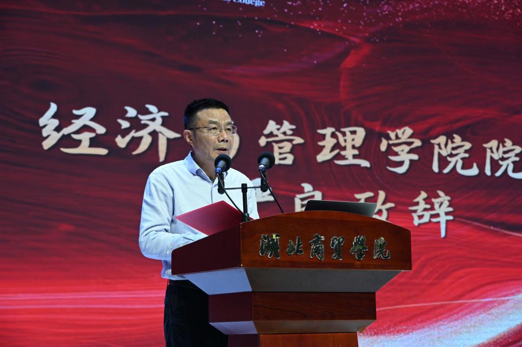 大会伊始,全体师生齐唱国歌,激昂的旋律拉开了表彰大会的序幕。严良开篇致辞,他提到“经世律己,管人悟道”是经管人传承淬炼的精神内核,是立德树人的 根本遵循,更是学风建设的灵魂指引。扎实优良的学风,善学善思、自信自强,便是学子们行稳致远的最硬底气。他鼓励经济与管理学院的学子们以今日榜样为镜,让励志成为刻骨的习惯。