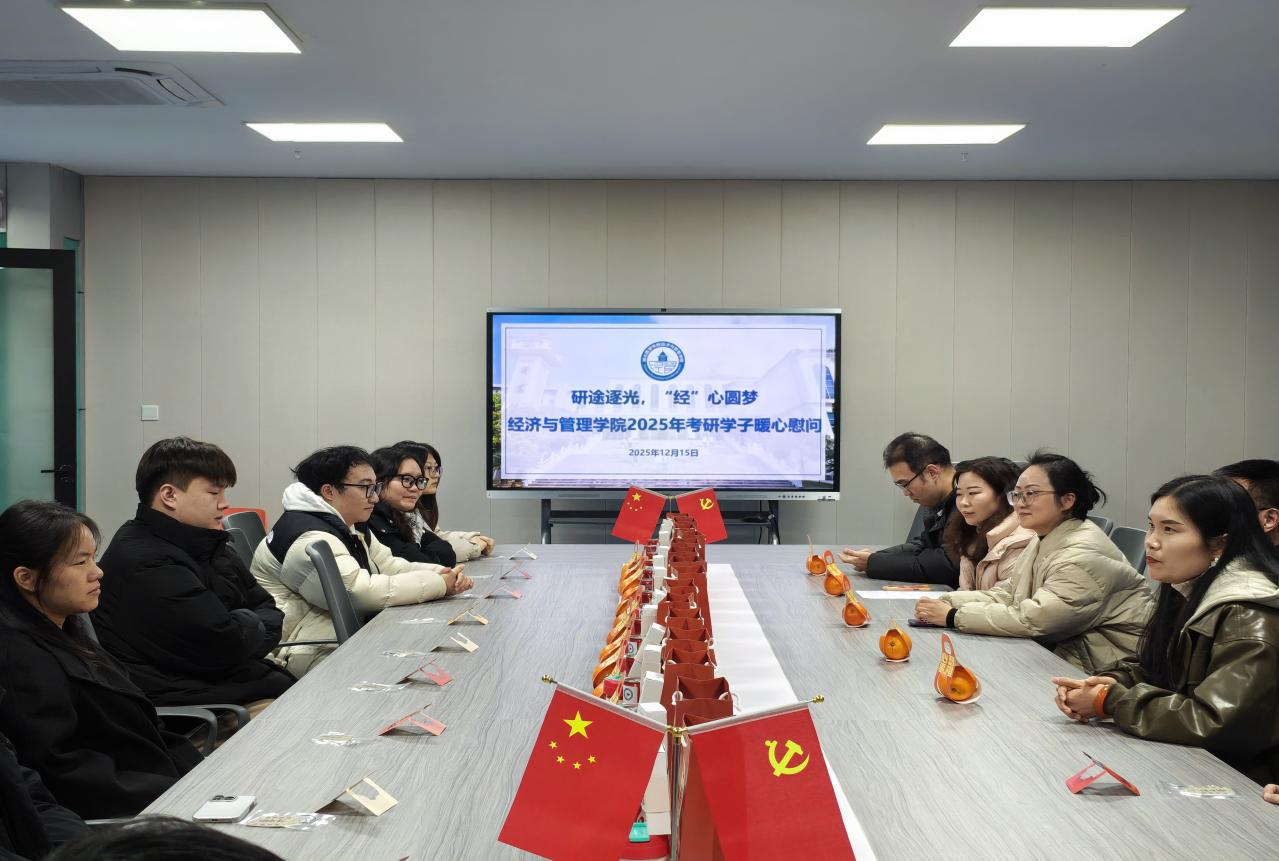此次慰问活动不仅是一次简单的考前关怀,更是一场为经管考研学子注入信心的温暖仪式;体现了经济与管理学院“以生为本”的育人理念,在师生间建立了有力的情感联结,为经管学院的学风建设搭上了一块坚实的基石。祝愿经管考研学子们不负耕耘,以平日之积淀书写满意答卷,在这场逐梦之战中旗开得胜,顺利迈入理想学府,开启人生新篇!