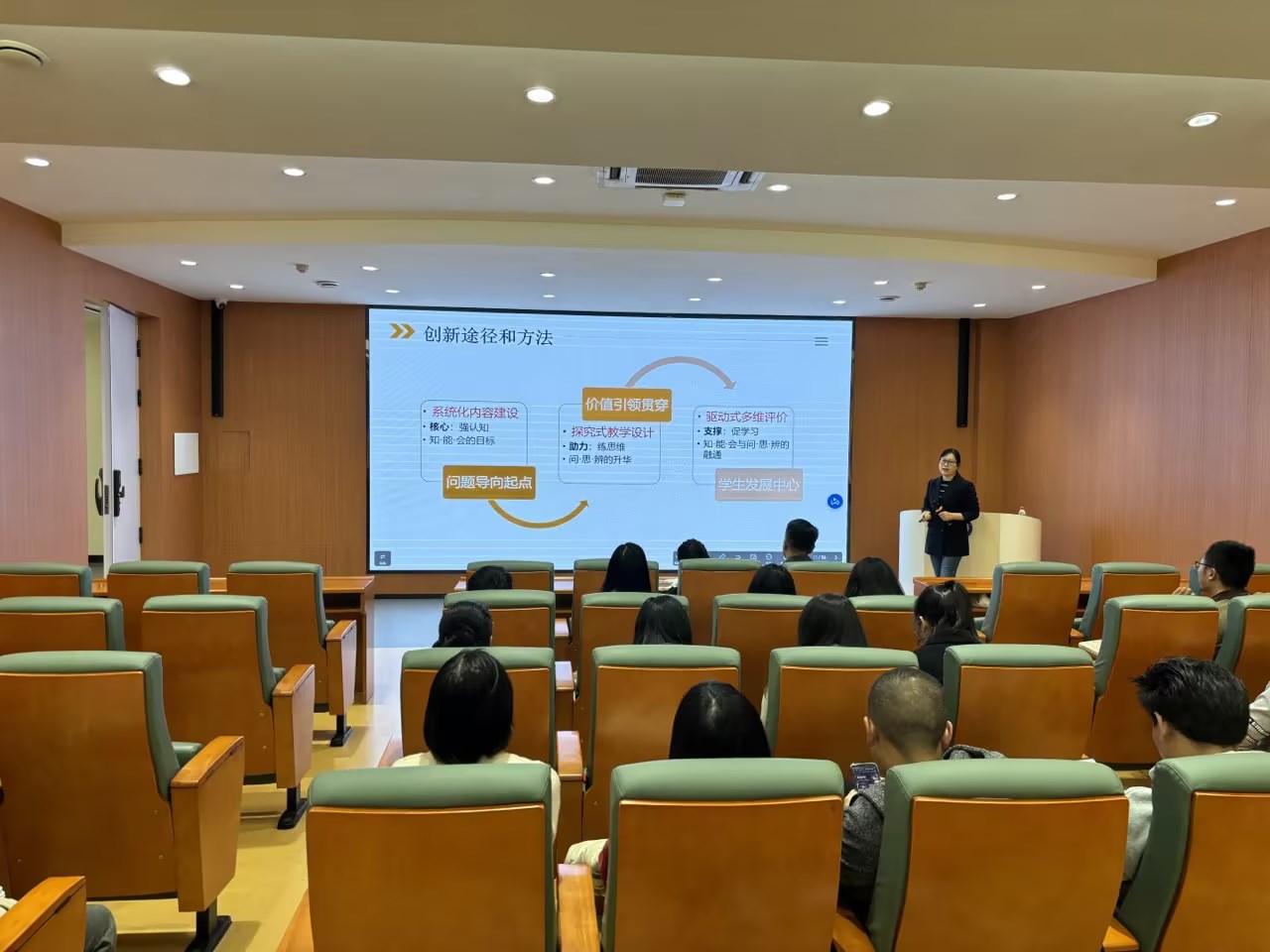 杨教授结合自身教学教研和教学创新比赛的经验,从教学创新目标、教学创新理念、内容建设的创新性以及创新成果反馈等方面为老师们带来一场内容全面详实、具有指导价值的比赛经验分享。同时,杨教授结合自身课程建设经验,为老师们提供了真做真学真创新,不断积累创新成果的建议。杨教授表示,教学创新应以学生为中心,以学习效果为重,以核心素养为本,进行课程内容建设的系统创新,从而为教学创新比赛的准备提供有力的支持和帮助。她表示,教学创新比赛所提供的新思路、新内容和新见解更应该反哺教学,不断更新和丰富教学内容,创新教学方式,通过真做真学真创新,真正实现教学与教研的共同发展。