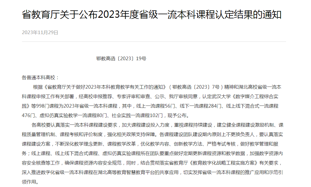 近年来,学院在一流课程建设方面持续加大投入,鼓励教师开展课程教学改革与实践,多次开展教师课程建设系统培训及相关经验交流。截至目前,学院共获批4门省级一流本科课程。