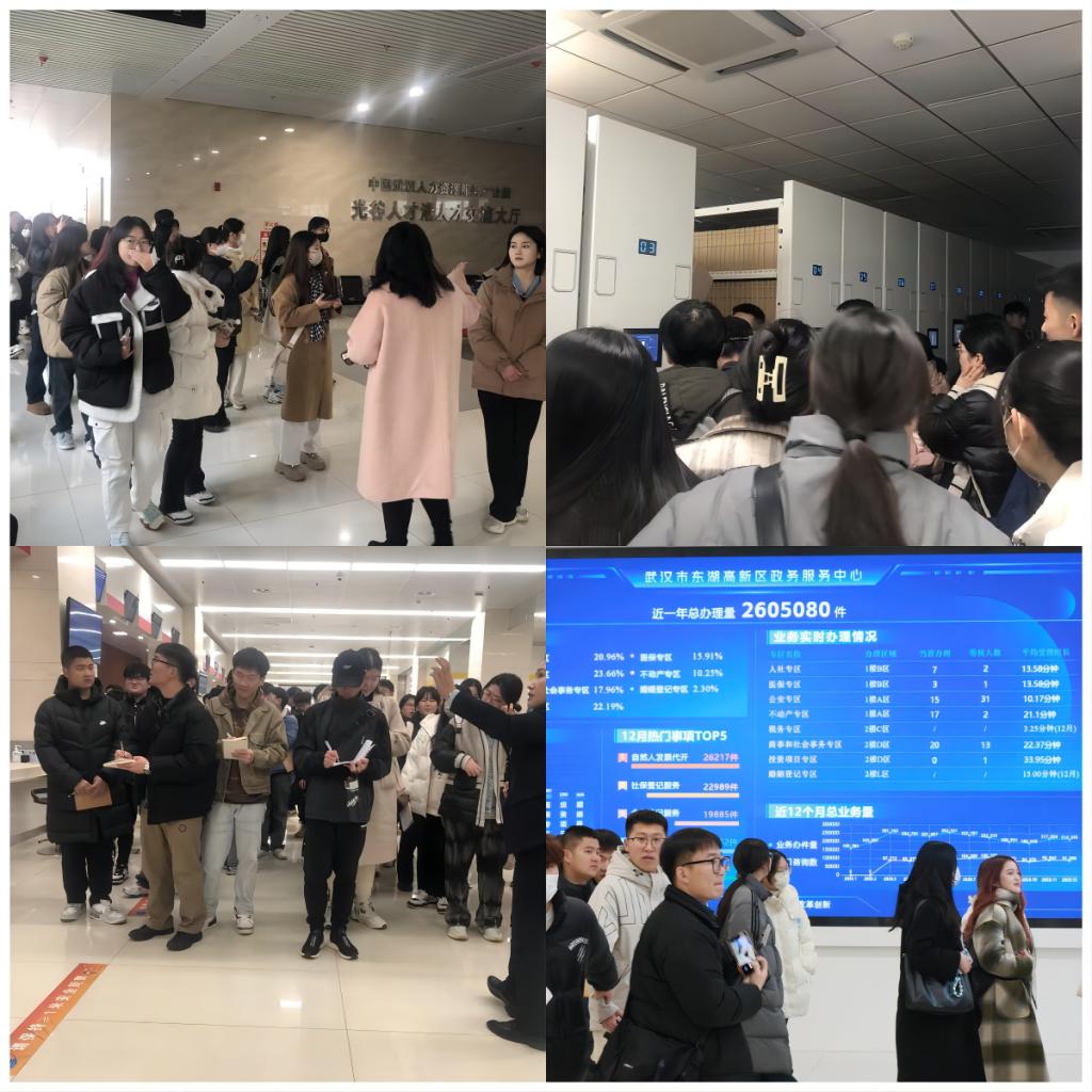 随后企业导师分组带队分赴人力资源中心市场部、档案整理部门和东湖高新区(光谷)政务中心物业投诉科、规划局市场科、不动产登记云呼叫中心等部门进行岗位实践。通过行业实习,较全面地了解企业人力资源管理的具体工作运作流程、各部门工作职责、工作程序与要求,一般岗位操作技能和方法。