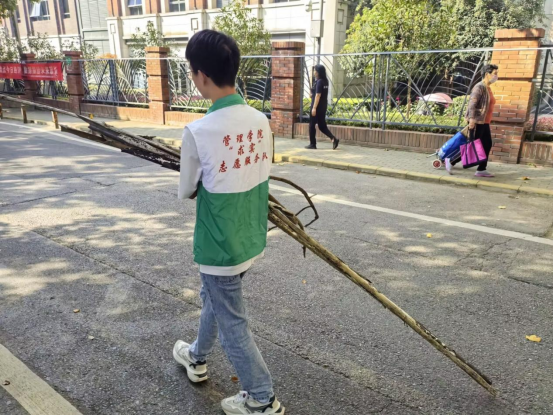 那全神贯注,奋力投身在社区清洁的行动中的一个个美好瞬间,在为社会作出了一定的贡献的同时也弘扬了爱护环境的美好风尚,管理学院“求实”志愿者队伍的“志愿于心,服务于行”的志愿精神也在活动当中得到体现。