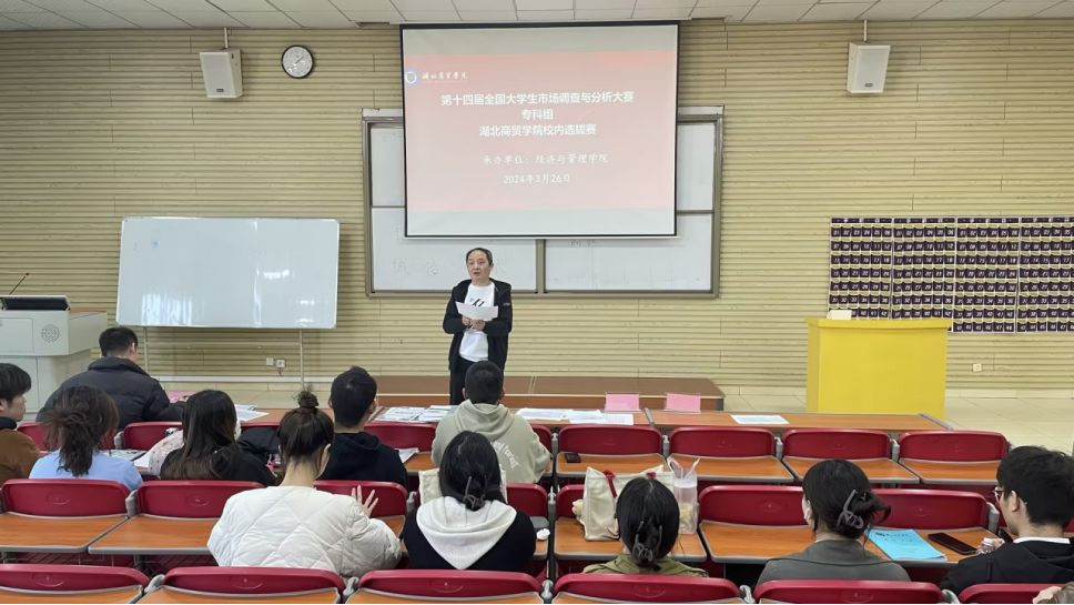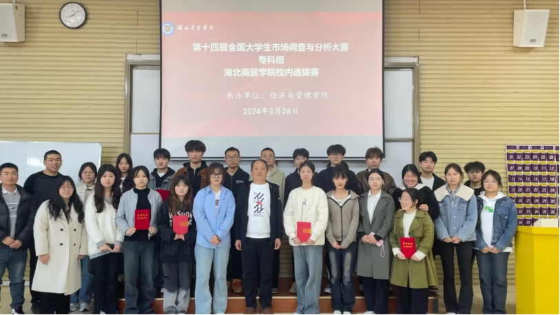 2024年3月26日,由中国商业统计学会主办,湖北商贸学院经济与管理学院承办的“正大杯”第十四届全国大学生市场调查与分析大赛专科组校内选拔赛决赛在咸宁教学楼A-110成功举办。出席此次决赛的嘉宾有经济与管理学院副院长徐刚、副书记王胜、辅导员翟浩、经济统计教研室教师曹洋。