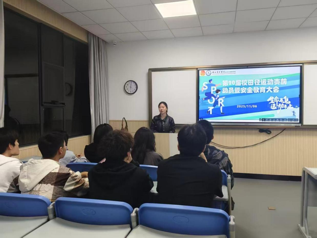 为迎接即将到来的第20届田径运动会,激发运动员参赛热情,并强化安全意识,11月4日-5日,经济与管理学院咸宁、武汉校区同步召开赛前动员暨安全教育大会。学院党总支副书记郑燕培、分团委书记戴小雨、辅导员王开涛老师及全体参赛运动员参加会议。